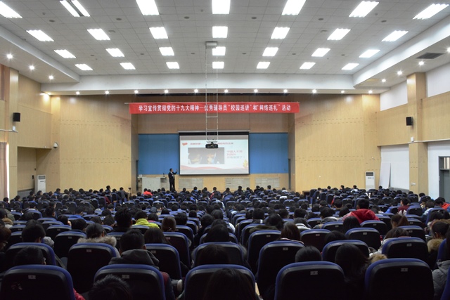 为了引导师生深入学习宣传贯彻党的十九大精神,推动辅导员和青年学生学在一起、讲在一起、悟在一起,12月21日,“学习宣传贯彻党的十九大精神——优秀辅导员‘校园巡讲’和‘网络巡礼’活动”化学工程学院专场在南教100举行,第八届全国辅导员年度人物、学校团委副书记石国卿和第七届全国辅导员年度人物入围奖获得者、石油工程学院党委副书记赵晓珂为现场500余名师生和网络直播间的观众们带来了一场精神的洗礼、思想的升华。本场宣讲活动由化学工程学院党委副书记王迅主持。