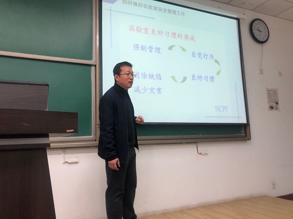 为增强到实验室进行毕业设计实验的本科生的安全意识、普及安全知识、消除安全隐患,3月14日,重质油阎子峰催化材料课题组在南堂215召开本科毕业论文安全培训讲座。本次培训由课题组乔柯老师主讲,实验室安全管理员聂梅老师及25名进组实验的本科生参加培训。
