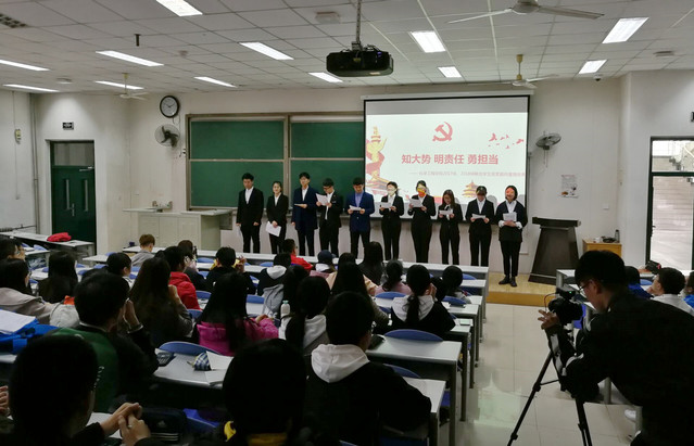授课过程中,党员同志系统讲理论、慷概辨形势,将世界和国家大势与大学生的成长成才结合到一起,引经据典,现身说法。在场学生认真聆听与记录,不时与主讲同学互动。专题讲授结束后,全体学生起立诵读了党支部宣言:“青年兴则国家兴,青年强则国家强。知大势者,为国赋使命之才;明责任者,有坚韧赤诚之心;勇担当者,立青云鸿鹄之志。我时代青年,必知势明责勇担当!以奋斗致敬青春,用热血报效国家!”授课环节结束后,党支部书记窦雅琴为到会的学生介绍了“学习强国”APP的主要内容,希望大家用好“宝藏APP”,加强全方位的学习,提升思想理论水平和综合素质。