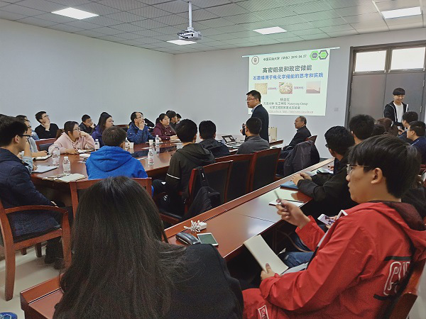 报告伊始,杨全红浅析了传统碳材料用于先进电池和电化学储能技术的挑战,介绍了传统的碳材料有“做不了”和“做不好”的瓶颈,继而讨论了石墨烯所获得的重要机遇和历史使命—石墨烯可以解决传统碳材料中存在的一些问题。接下来,杨全红重点剖析了致密储能的重要性以及石墨烯用于致密储能的理论基础和现实优势;除此之外,杨全红还介绍了其课题组在石墨烯高密组装和高体积能量密度储能材料/器件方面的研究进展并进行了展望。报告结束后,有老师和同学对关于石墨烯所做材料的机械强度方面提出了问题,杨全红耐心的对此问题作出解答并分享其人生感慨“花开有早晚,花期有长短,但都一样灿烂,一样美丽”,这也得到了老师和同学们的认同。