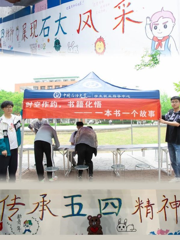 正值青年五月,为将习近平新时代中国特色社会主义思想和五四精神真正融入到青年的学习和生活中,激发学生对图书的热爱、回顾红色征途,不忘历史、开拓未来。化安2202、化工2203和化工2206三支部于5月18日和5月21日分别在西环106和荟萃广场开展“传承五四精神、展现我校风采”主题团日活动以及“时空作约,书籍化悟”一本书一个故事五月专题图书活动。