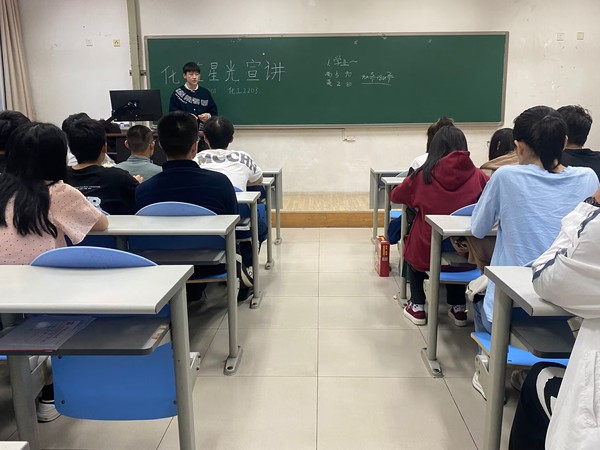 为使大一学生了解未来保研、考研、就业相关问题,明晰未来发展方向,化工2201、化工22036月1日南堂106展开化蕴星光宣讲会,由19级保研清华学生马鸣宇担任主讲人。化工2201、化工2203全体成员参加。