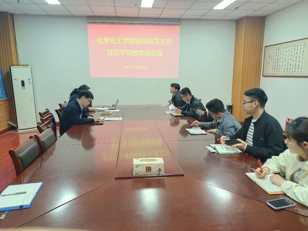 4月19日上午,辅导员党支部在工A119召开党纪学习教育启动会,会议由支部书记窦雅琴组织主持,辅导员党支部全体党员参加。