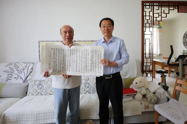 在现场,刘积舜、张永宁向李希昉赠送了《中国石油大学校史》《风雅我校——中国石油大学校藏书画精品》等校庆丛书和纪念物品。同时,李希昉也向学校档案馆捐赠了自己的书法作品,以表达对母校的深厚感情和对学校发展的美好祝愿。