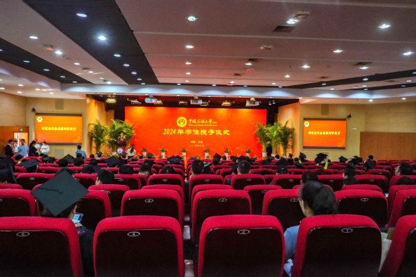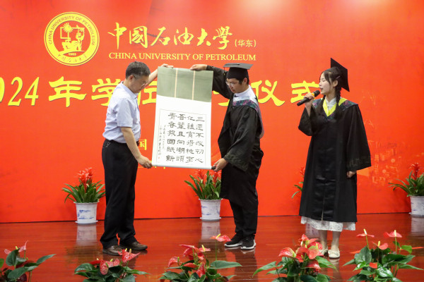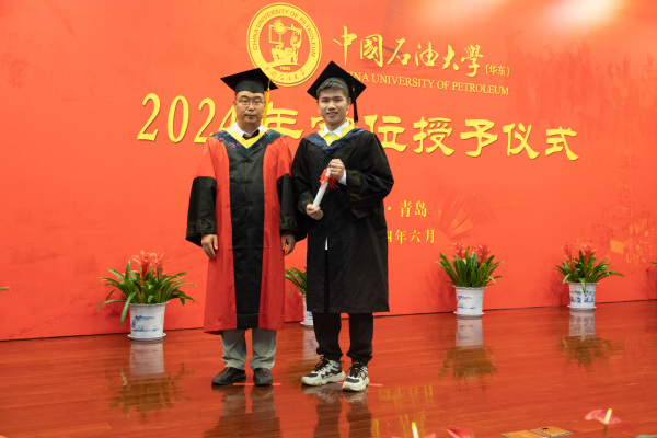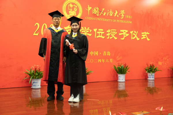 2024届学院共有471人获得学士学位,319人获得硕士学位,47人获得博士学位。在欢快的进行曲中,刘欣梅、刘东为获得博士、硕士学位的毕业生颁发学位证书。刘欣梅、刘东、刘义、曾景斌、田原宇、刘芳分别为化工、应化、化安、化学、能化、环境各专业的本科毕业生颁发学位证书。