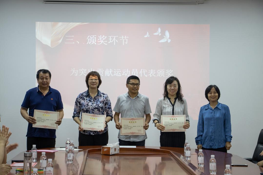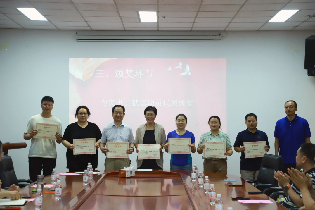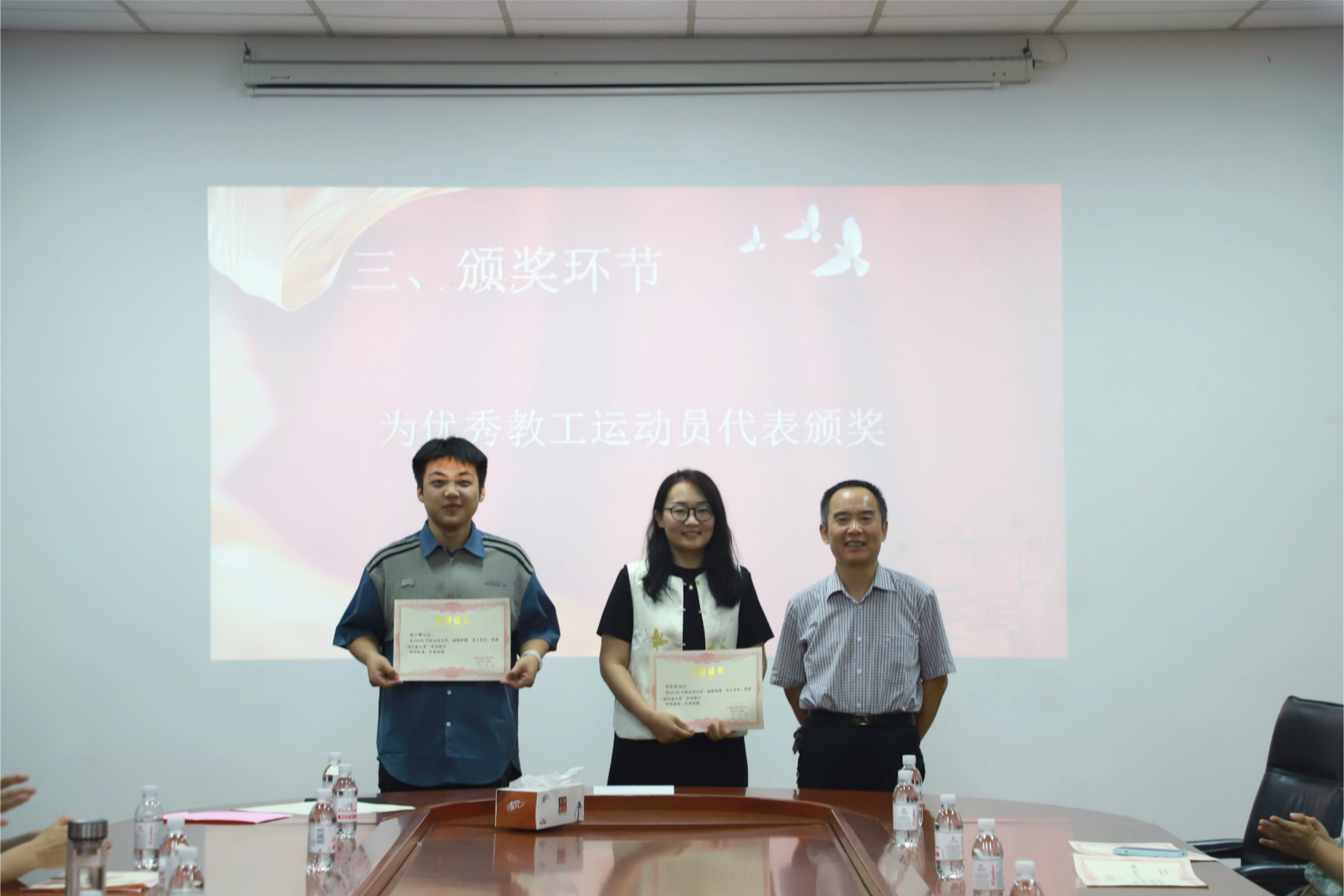随后,颁奖环节正式开始。首先,获“优秀组织单位的”化学实验中心、学院办公室、环境与安全工程系工会小组组长上台领奖,他们凭借出色的组织能力和团队协作精神,为运动会的成功举办做出了重要贡献。紧接着,突出贡献运动员、优秀运动员以及最佳新人奖的获奖者依次上台,从颁奖人手中接过荣誉证书,脸上洋溢着自豪与喜悦的笑容。台下师生用热烈的掌声与欢呼声,向获奖者表示了最诚挚的祝贺与敬意。