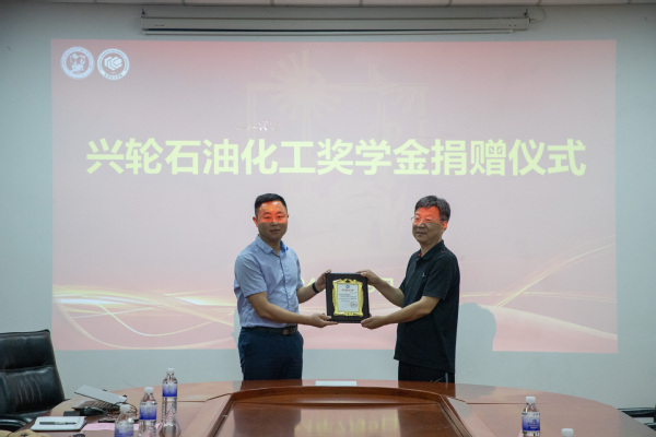 捐赠仪式上,张永宁代表学院接受兴轮集团人民币10万元的奖学金捐赠,孙茂骥代表学校回赠捐赠纪念牌。