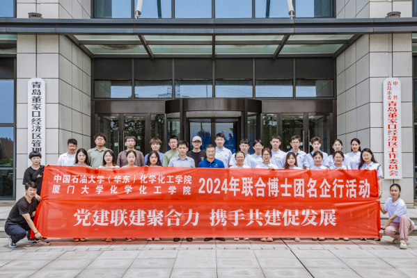 为进一步加强校企合作,引导和帮助广大青年学子上好“大思政课”,在社会课堂中“受教育、长才干、作贡献”,坚定信念听党话、跟党走,7月24日,学院组织博士团与厦门大学化工学院博士团、青岛董家口发展集团有限公司委员会联合开展“党建联建聚合力 携手共建促发展”党建联建活动。党建联建座谈会在董家口规划展览馆401会议室举办。青岛董家口经济区管委副主任王延臻,董家口发展集团(以下简称“董发集团”)党委委员、副总经理程海,党委委员、纪委书记、党群办主任曲耕和,党群办副主任徐淑娜,总工办主任常均辉出席会议,厦门大学英国正版365官方网站党委副书记聂鑫、中国石油大学(华东)党委组织部副部长梁秀萍、英国正版365官方网站党委书记张永宁、英国正版365官方网站党委副书记徐光辉就党建联建活动分别发言,程海主持会议,董家口经济区工委党员代表、厦门大学英国正版365官方网站博士团、英国正版365官方网站优秀博士生代表参加座谈。