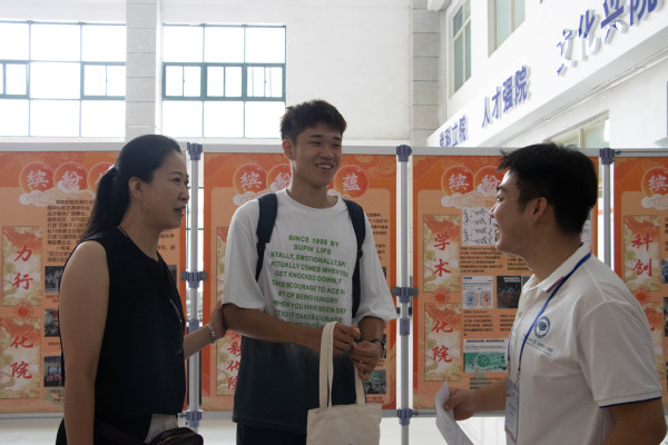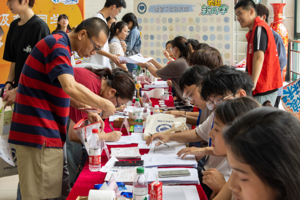 在学院大厅,“光辉的历程”文化墙及优秀校友展,让新生迅速了解学院的历史和发展;“优秀学生集体及个人风采展”“研究生学术成果展”等迎新展板,让新生充分感受学院学生科技创新氛围;“缤纷化蕴”主题展,通过领航化院、拼搏化院、多彩化院、力行化院、科创化院、腾飞化院、奋进化院、学术化院向新生展示了多彩的大学生活。穿过挂有“畅想缤纷化蕴”“共享青春‘化’章”的标语和“请党放心强国有我”的立柱,新生分年级、专业进入迎新报到点,办理入学相关手续。
