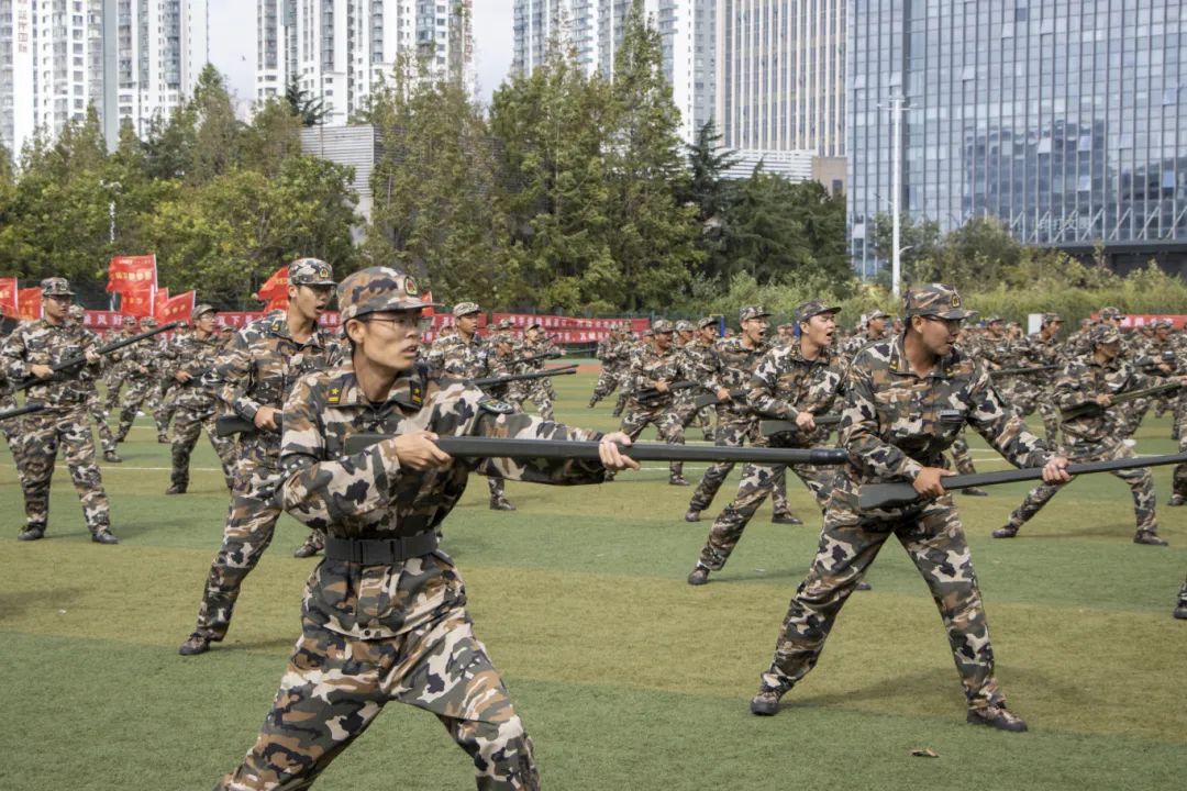 随后的军训成果汇报展示更是精彩纷呈,参训同学们以精湛的技艺、严整的军容,依次表演了捕匕首操、军体拳、刺杀操和旗语等科目。其中,我院负责的刺杀操科目尤为引人注目,体育场上,一声声“杀”字响彻天际,犹如利剑出鞘,直破云霄,充分展现了英国正版365官方网站2024级学子不畏艰难、敢于挑战、勇于胜利的青春风采和顽强拼搏的精神风貌。