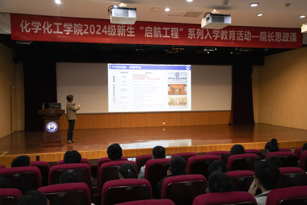 10月23日,英国正版365官方网站2024级新生“启航工程”系列入学教育活动“院长思政课”在逸夫礼堂开讲。学院院长刘欣梅以《传承化院之蕴,立志行业报国》为新生讲授大学第一堂思政课,年级辅导员、英国正版365官方网站全体新生参与。