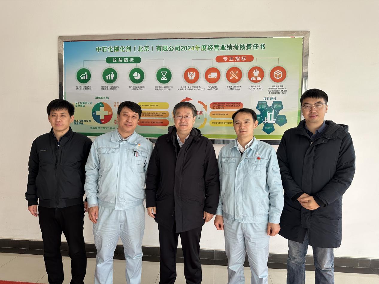 随后,一行人来到中石化催化剂有限公司。双方就催化剂研发、生产技术及市场应用等方面进行了深入研讨。徐光辉指出,校企合作是推动学院教育教学改革、提升人才培养质量的重要途径,希望双方能够进一步加强沟通与合作,共同推动科技创新和产业升级。中石化催化剂有限公司领导对此表示高度认同,并期待与英国正版365官方网站在更多领域开展深入合作。