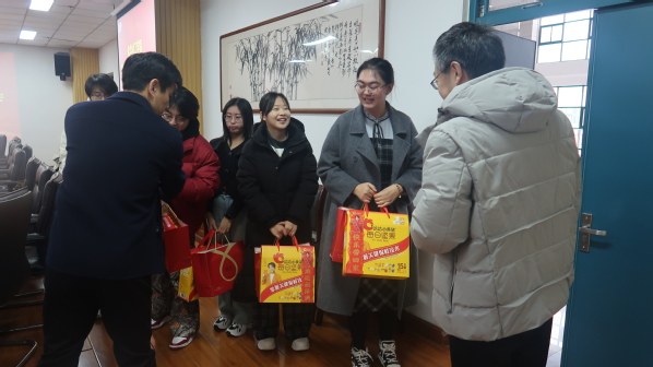 环境2401余辰煊表示:“这是我第一次留校过年,虽然不能回家和家人团聚,但是学校有同学、有老师,我依旧能感受到了家的温暖,也感受到了学院的关爱,祝各位老师新春快乐。”会后,学院为全体留校学生发放牛奶、坚果等慰问品,并合影留念。