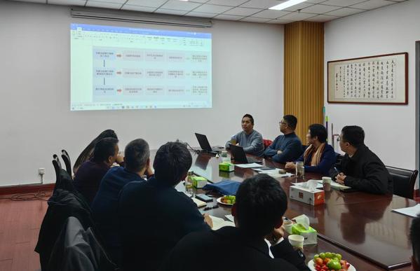 在会议的关键环节,针对江苏油田研究院提出的技术难题,环境与安全工程系刘其友副教授代表研究团队进行了项目理解的汇报,他结合自身丰富的研究经验以及对江苏油田采油废水实际情况的深入分析,提出了切实可行的点对点解题思路。刘其友副教授的汇报得到了与会人员的高度认可,为解决实际工程难题提供了清晰的方向。在随后的交流环节,研究院的郭鹏高级工程师与我院各位老师就实际问题展开了深入且卓有成效的讨论。交流内容涵盖了接触氧化系统的生物活性评价、系统除油菌群与环境因素的关联分析及微生物代谢路径的机制解析等多个方面。双方在交流中碰撞出思想的火花,为后续合作提供了丰富的思路和建议。