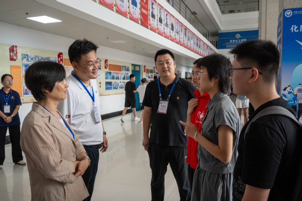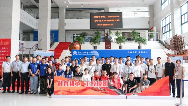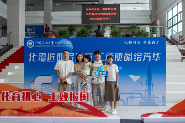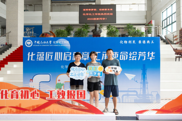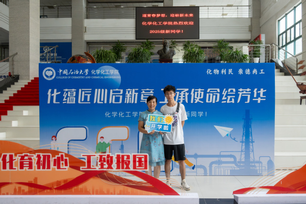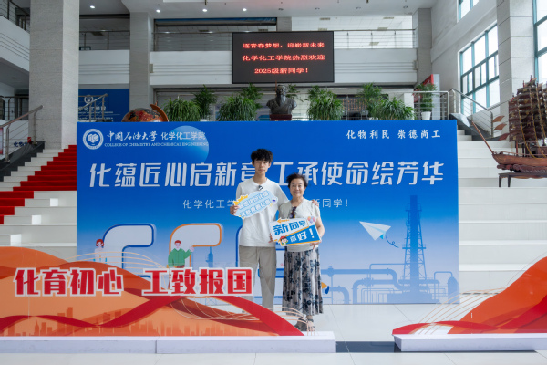 8月30日下午,校长郝芳院士一行来到工科楼A座大厅指导迎新工作,学院院长刘欣梅、学院党委书记郝志杰汇报新生报到情况。校长郝芳院士寄语新生:“欢迎你们报考中国石油大学,化院是有着辉煌历史的学院,你们是化工的未来”。校领导们勉励迎新工作者继续激发工作热情、做好服务保障工作,向前往报到的新生表示欢迎,并和他们合影留念。在学院的主题展板前,新生与家长满怀激动与憧憬,首次与学院共同定格这温馨瞬间。