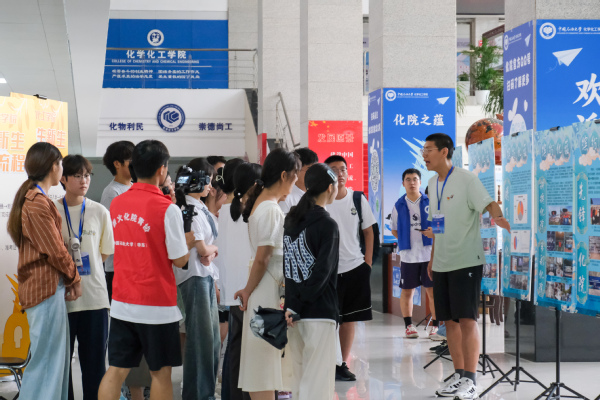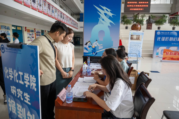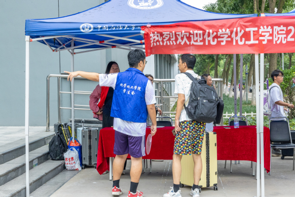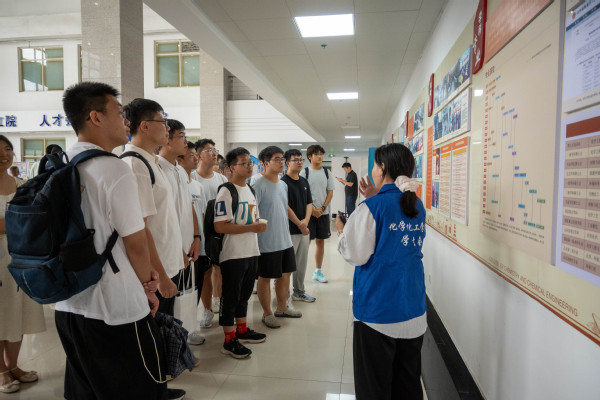 在学院大厅,本科新生班主任、辅导员和志愿者们在各自工作岗位上帮助新生完成报到并发放相关材料和新生礼包。工科楼A座“光辉的历程”文化墙及优秀校友展,让新生迅速了解学院的历史和发展;“缤纷化蕴”主题展,通过领航化院、拼搏化院、多彩化院、力行化院、科创化院、腾飞化院、奋进化院、先锋化院向新生展示了多彩的大学生活。穿过挂有“畅想缤纷化蕴”“共享青春‘化’章”的标语的立柱,新生分年级、专业进入迎新报到点,办理入学相关手续。