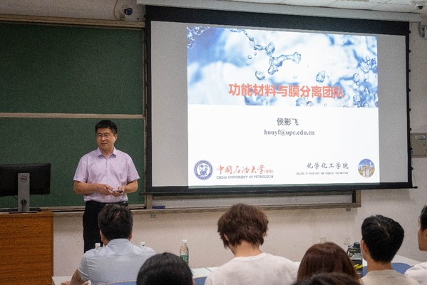 学校教务处处长、荟萃学院院长、英国正版365官方网站教授侯影飞围绕功能材料与膜分离团队的研究方向展开讲解,从团队在新型膜材料制备、工业废水处理膜分离技术等核心研究内容,到近年来在国家级项目中的突破成果,再到团队成员的培养模式与学术交流平台,以通俗的语言将专业知识转化为新生易理解的内容,让同学们直观感受到该领域的应用价值与科研魅力。