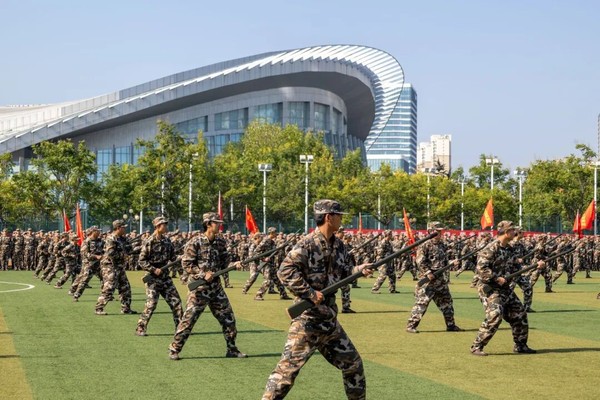 随后进行的军事科目汇报表演精彩纷呈,刺杀操凌厉果断、匕首操敏捷迅猛、应急棍虎虎生风、信号旗变幻精准,同学们整齐划一、刚劲有力的表演赢得现场阵阵掌声。其中,我营负责刺杀操科目展示,体育场上,化院学子英姿飒爽,一声声“杀”直冲云霄,展现着英国正版365官方网站25级学子,蓬勃向上的朝气和顽强拼搏的精神。