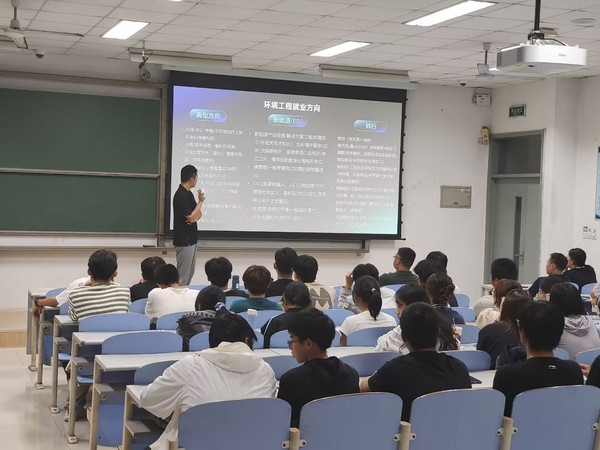 郑临奥梳理了选调生、公务员、科研院所、央企国企等典型就业路径,客观分析了跨行业转型的可能性,为学生职业规划提供了立体参考。随后郑临奥用图文并茂的方式带同学们了解了行列前沿,介绍先进技术,不仅拓宽了同学们的视野,更让大家直观感受到环境工程专业“传统与创新融合”的发展活力。