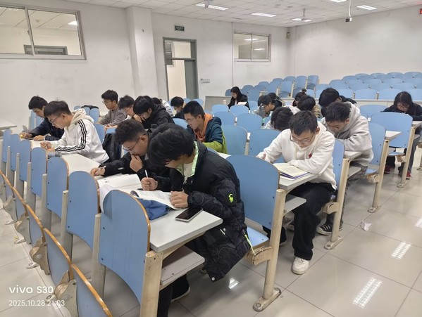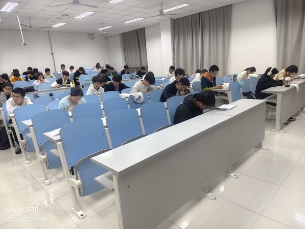 高数模拟考试是“备考诊断”的关键一环。为精准掌握新生高数学习情况,25级于第九周统筹各班级开展高数模拟考试。此次考试由各班班委参考往届练习题自主命题,题型覆盖选择、填空、计算、证明等考试常见类别,重点考查核心知识点。考试过程严格参照正式考场规范,从试卷分发、时间把控到批改评分,全程由班委协同监督;考后,各班迅速完成试卷分析,通过“成绩排名+错题统计”,精准排查存在困难的同学,并将名单同步至学习互助小组,为后续针对性辅导提供依据。不少同学表示:“模拟考试让我清楚看到自己的知识漏洞,也让我意识到不能放松学习节奏,得抓紧查漏补缺。”