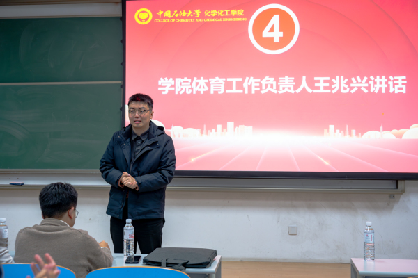 大会尾声,学院体育工作负责人王兆兴老师作总结讲话。他指出,体育工作是学院人才培养与校园文化建设的重要组成部分,对锤炼学生意志品质、凝聚集体力量具有重要意义。他寄语全体队员:“要勇于直面严寒考验,坦然承受训练艰辛,以坚定的意志力圆满完成冬训任务,实现个人竞技水平与队伍整体实力的双重提升。” 同时,王兆兴代表学院承诺,将全力做好后勤保障工作,为冬训的高效开展提供坚实支撑,确保冬训成效最大化。