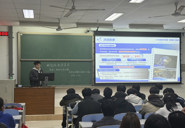 11月12日,为帮助应化2501与应化2503团支部支部成员明晰科创路径、破解入门困惑,应化2501班班长赖兆萍特邀海油2301班科创先锋郑子健开展专题分享会。作为第十九届“挑战杯”全国大学生课外学术科技作品竞赛“揭榜挂帅”专项赛(青年科技人才赛道)一等奖得主,郑子健还斩获第五届国际海洋工程装备科技创新大赛等国家级荣誉13项、省部级荣誉11项,其在科创领域的扎实积累与亮眼成绩,让这场分享会成为两支部解锁科创密码的“干货盛宴”。