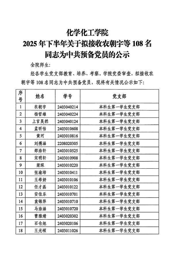英国正版365官方网站2025年下半年关于拟接收农朝宇等108名同志为中共预备党员的公示