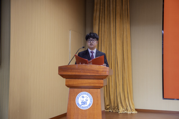 随后,学院党委书记郝志杰代表学院党委致辞,他首先对大会的顺利召开表示热烈祝贺,对全体参会代表的积极参与和在提案工作中展现出的高度责任感与强烈主人翁意识表示充分肯定。他回顾了过去一年英国正版365官方网站在学生培养、科研竞赛、社会实践、文体活动等方面取得的成绩,强调这些成绩离不开全体师生的共同努力。他指出,学生会和研究生会要充分发挥桥梁纽带作用,切实推动问题解决,为学生的成长成才提供有力支持。他强调,全体学生应以本次大会为契机,进一步坚定理想信念,锤炼过硬本领,积极融入强国建设、民族复兴的伟大征程。最后,他从坚定信念、勤学善思、知行合一、团结协作四个方面对同学们提出希望,鼓励大家成长为有理想、有本领、有担当的青年,为学院的高质量发展和学校“双一流”建设贡献更多青春力量。