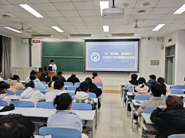 安全工作是本次会议的重点。闫腾达从四方面提出明确要求:外出需遵守交通规则,骑行时规范佩戴头盔;妥善保管个人财物,警惕各类诈骗陷阱;冬季宿舍内严禁吸烟及使用大功率电器,杜绝火灾隐患;请假销假须通过“e站通”小程序规范办理,返校后及时完成销假流程,确保行踪可溯。此外,他还详细介绍了学校2025年度“文明宿舍”评选活动,梳理活动时间节点,鼓励各班级积极参与。