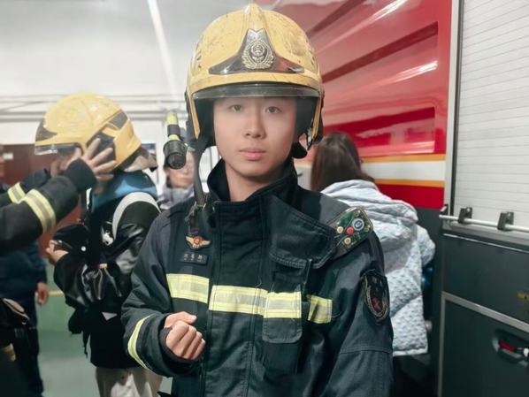 在体验环节,团员们在指战员的指导下,穿上沉甸甸的消防服。随后,支部成员有序登上消防云梯,随着云梯缓缓升起,支部成员们真切感受到了消防员执行高空救援任务时的艰险。“穿上消防服的那一刻,我深刻体会到了消防员肩上的责任与担当。”一名支部成员感慨道。