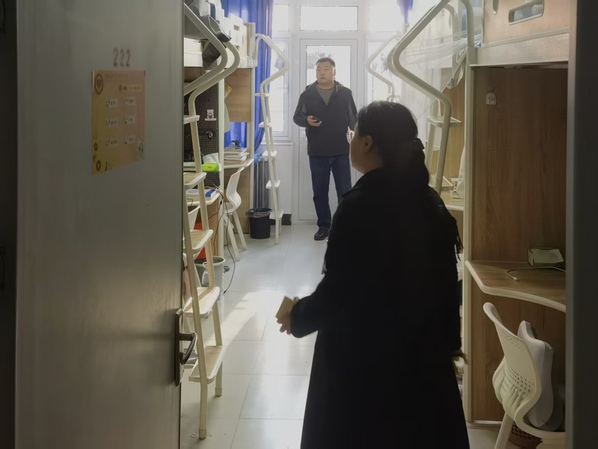 在排查安全隐患的同时,老师们格外关注学生的生活与健康状况。老师们细心叮嘱:“近期气温急剧降温,早晚温差大,一定要及时增添衣物,做好保暖措施,避免着凉发烧,有身体不适要及时告知辅导员。”此外,老师们还与同学们亲切交流,详细询问入学以来的生活适应、学习进展等情况,倾听大家在宿舍生活中遇到的困难与诉求,耐心解答疑问,让同学们在严抓安全的氛围中感受到学院的温暖关怀。