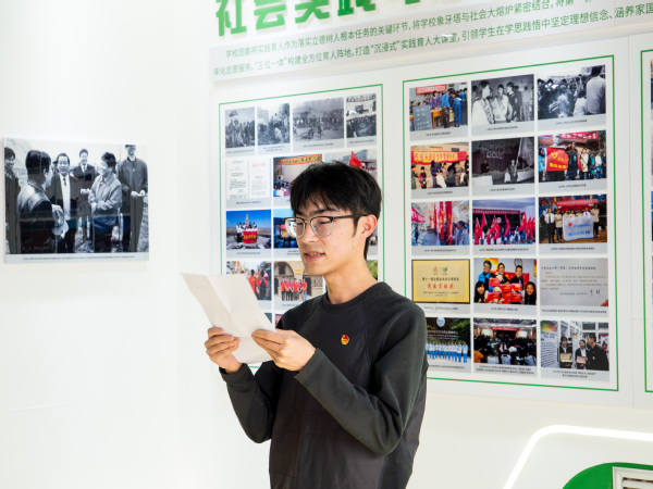 仪式开始前,全体新团员共同参观团情团史教育基地,工作人员通过珍贵的历史照片和感人的奋斗故事,为大家生动讲述了共青团百年征程的峥嵘岁月和我校优秀的青年团员榜样事迹,使新团员们深刻理解了“团员”二字背后沉甸甸的责任与荣光。