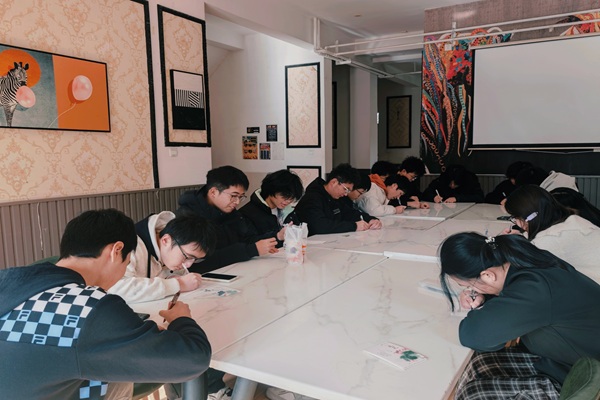活动伊始,支部成员们齐聚一堂,系统学习二十四节气的文化知识。王福帅结合课件,梳理了二十四节气从农耕文明中起源、在秦汉时期定型的发展脉络,讲解了其作为“时间标尺”指导农业生产、关联民俗节庆的实用价值,还重点介绍了冬至作为二十四节气中重要节点的独特地位,以及“数九寒天”的民俗传统、“冬至大如年”的文化寓意。随后,成员们一同赏析《立春》《夏至》《冬至》等经典节气诗词,支部成员们拿起纸笔认真临摹,在一笔一划间体会文字里的节气韵律与人文情怀。