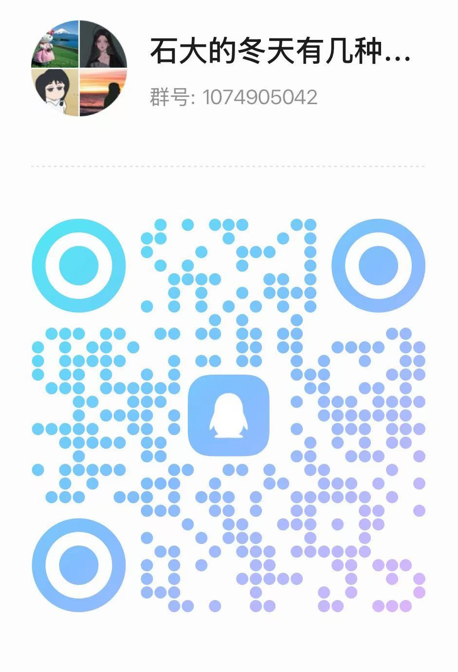 请参赛同学以#我校的冬天有几种姿态#为话题标签在微信朋友圈以四宫格或九宫格形势发布后,将作品原图+朋友圈截图+配文(文字以word形式)打包成压缩包,以“研究生摄影征集+姓名”为邮件主题,发送至指定邮箱:1909892661@qq.com。并同步加入下方QQ群。